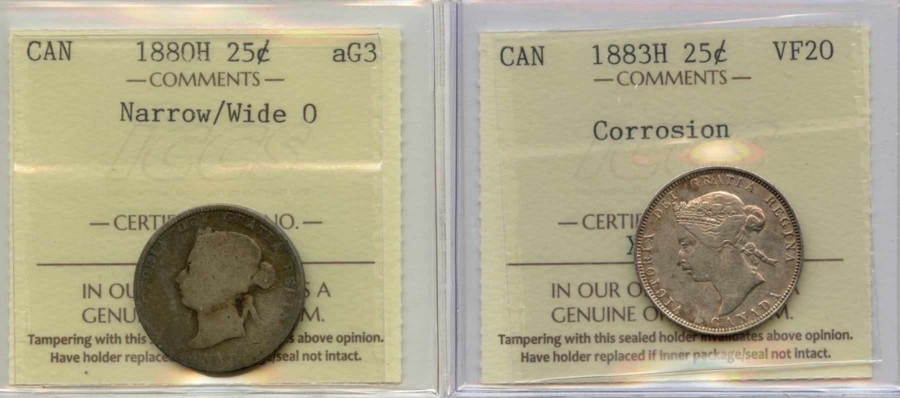 Victoria Twenty-Five Cents ICCS Group - Lot of 2.