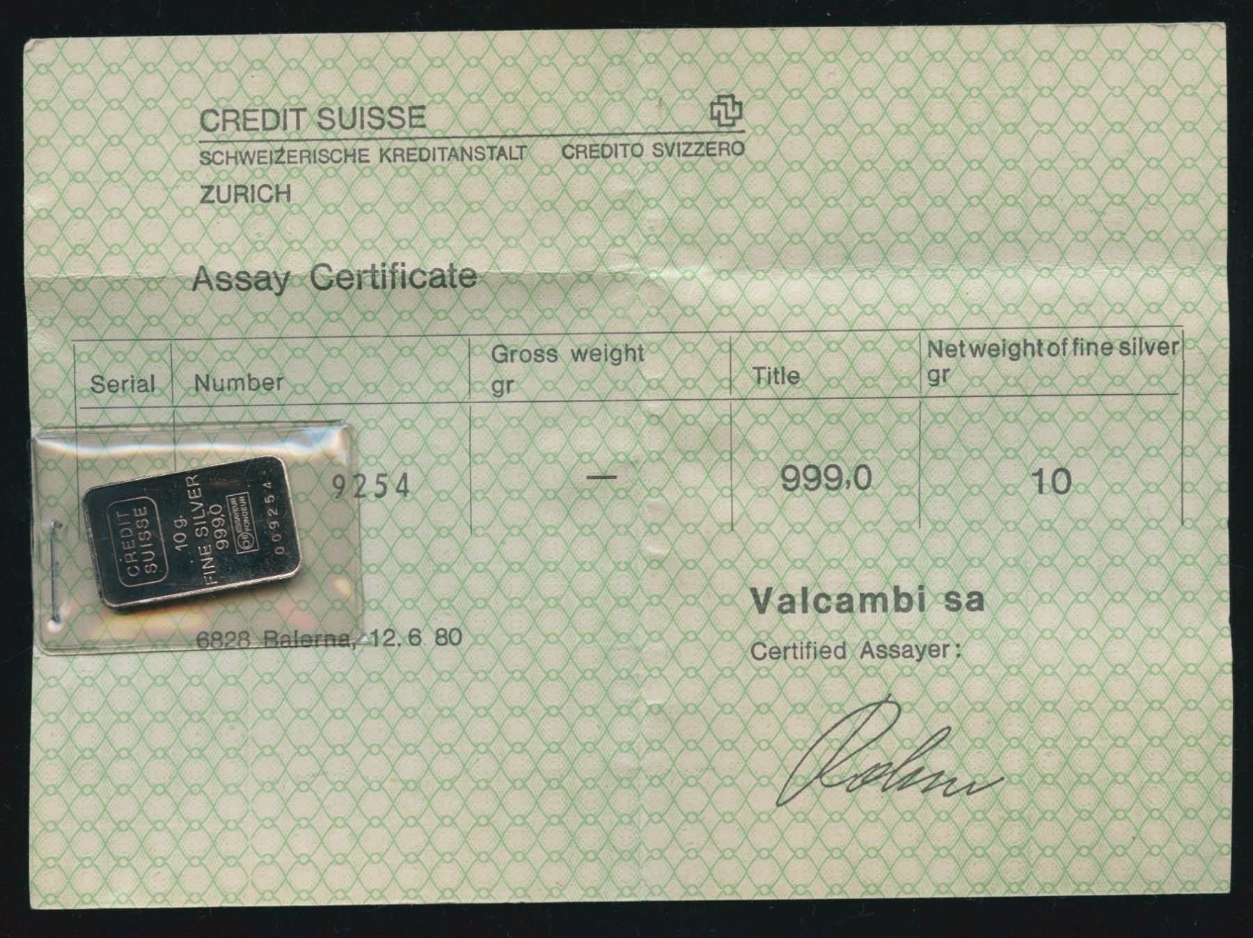 10g bar as issued in 1980, with original certificate (TAX Exempt).