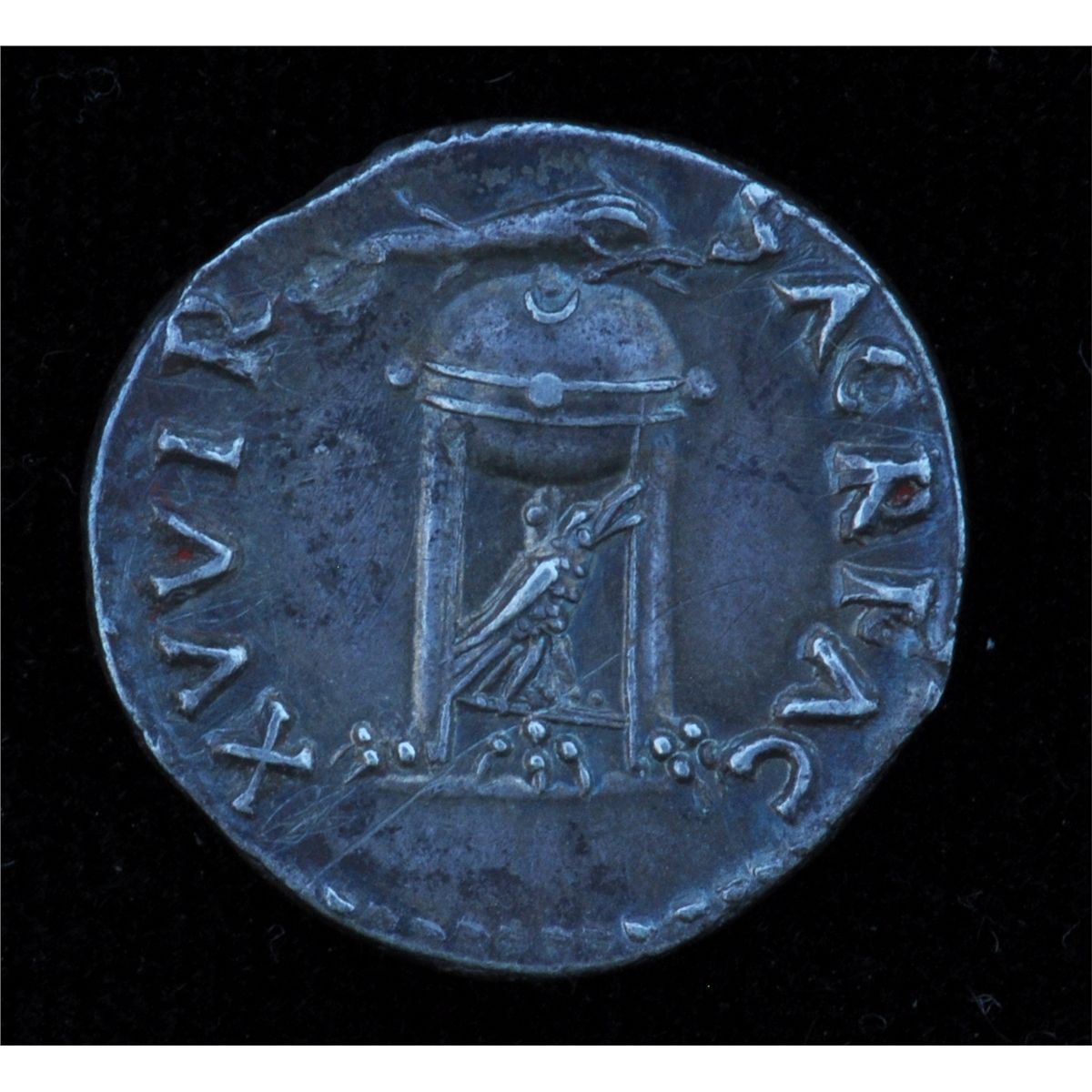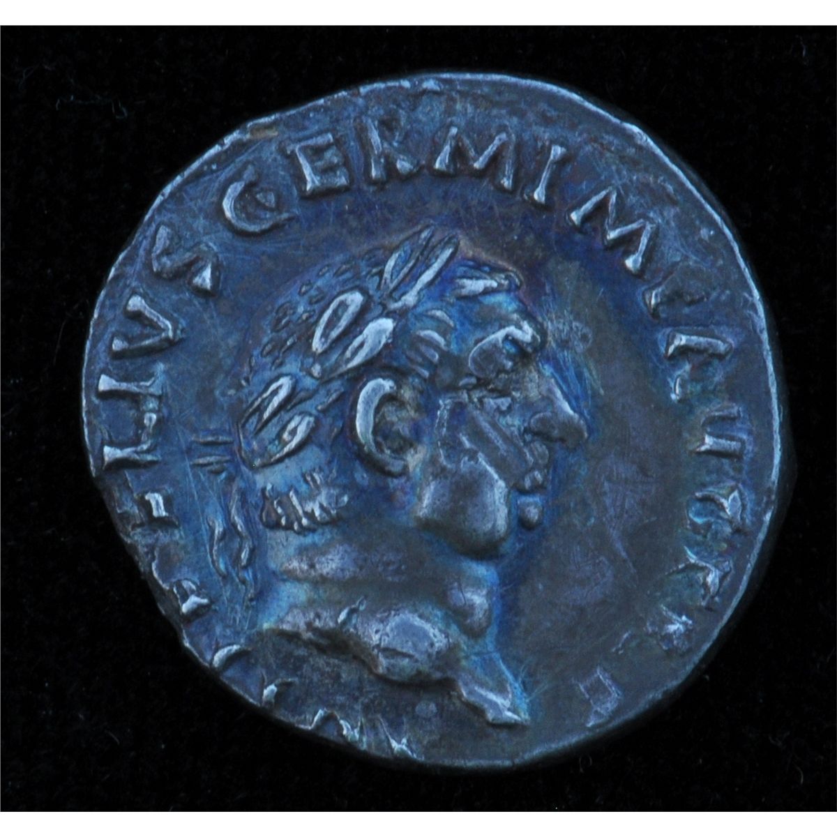 Vitellius (69 AD) - Rome AR-Denarius Obv: Laur. hd. r., A VITELLIVS GERM IMP AVG TR P Rev: Tripod-lebes XV VIR SACR FAC. 3.1 grams. S-2201 AEF with irridescent toning. Great addition to any 12 Caesar's collection. RARE.