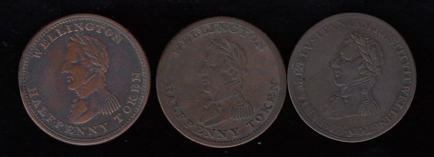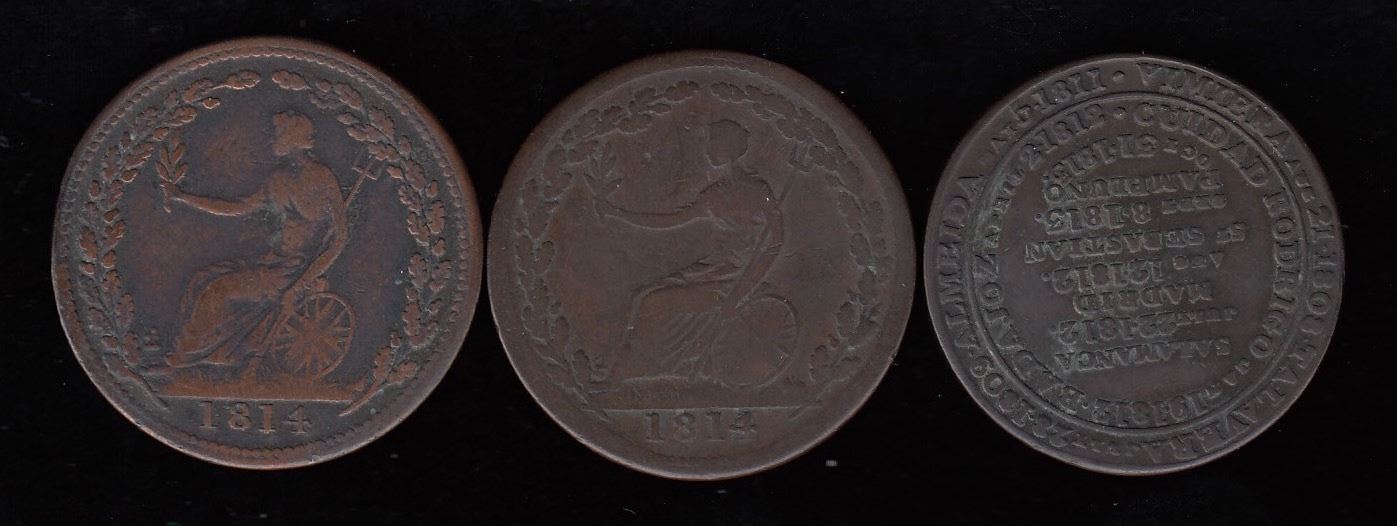Lot of three: 1814 Halfpenny CH WE-8A2/BR 979; F || 1814 Halfpenny CH WE-8A6/BR 979; F, cleaned || Peninsular Halfpenny CH WE-11D2/BR 988; Fine. 3 Pcs.