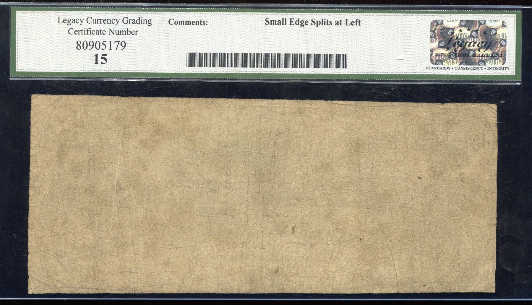 CH 800-10-02. Legacy Fine 15, small edge splits at left. Only 12 on the registry, 2 of these are in an institutional collections. S/N:383/B.