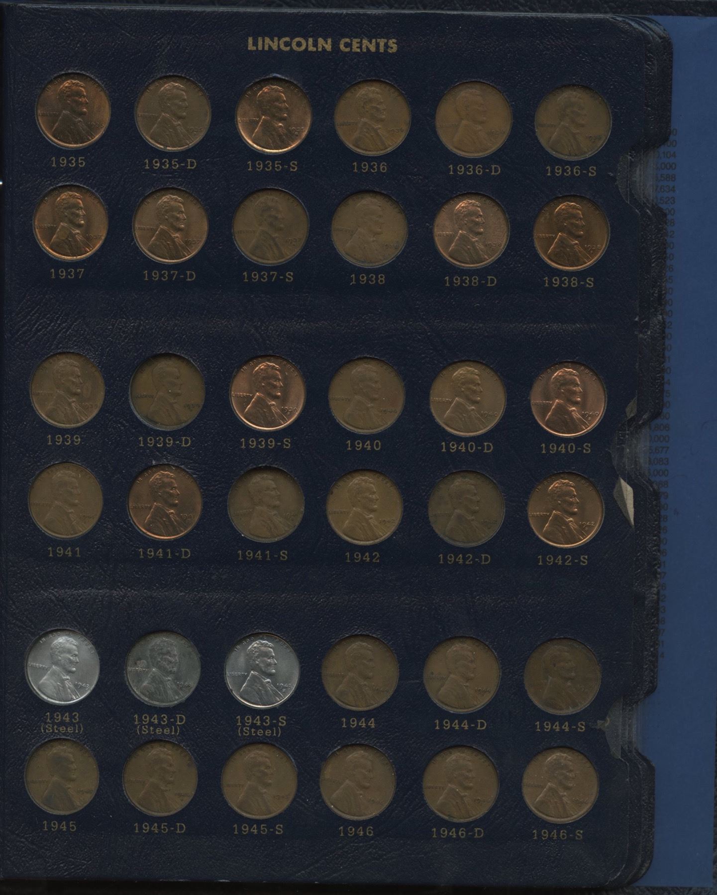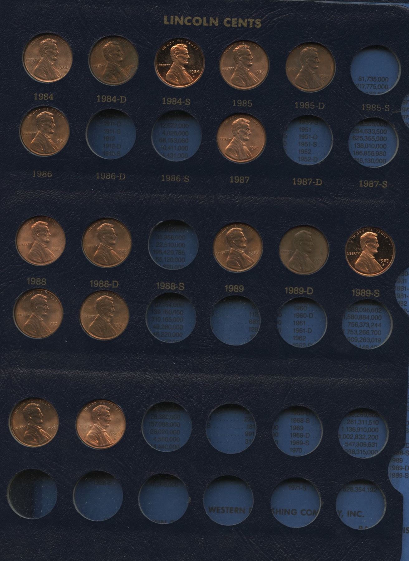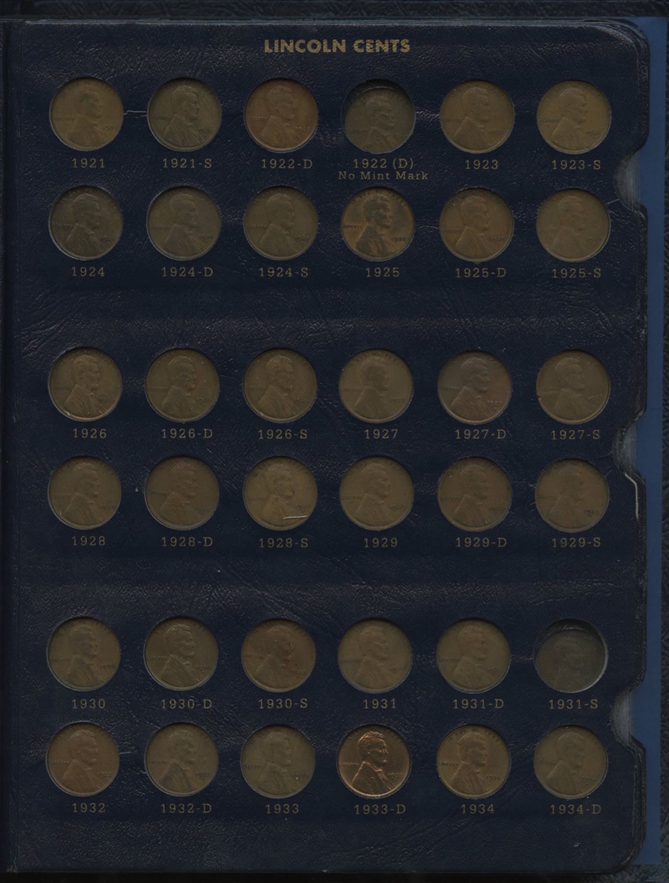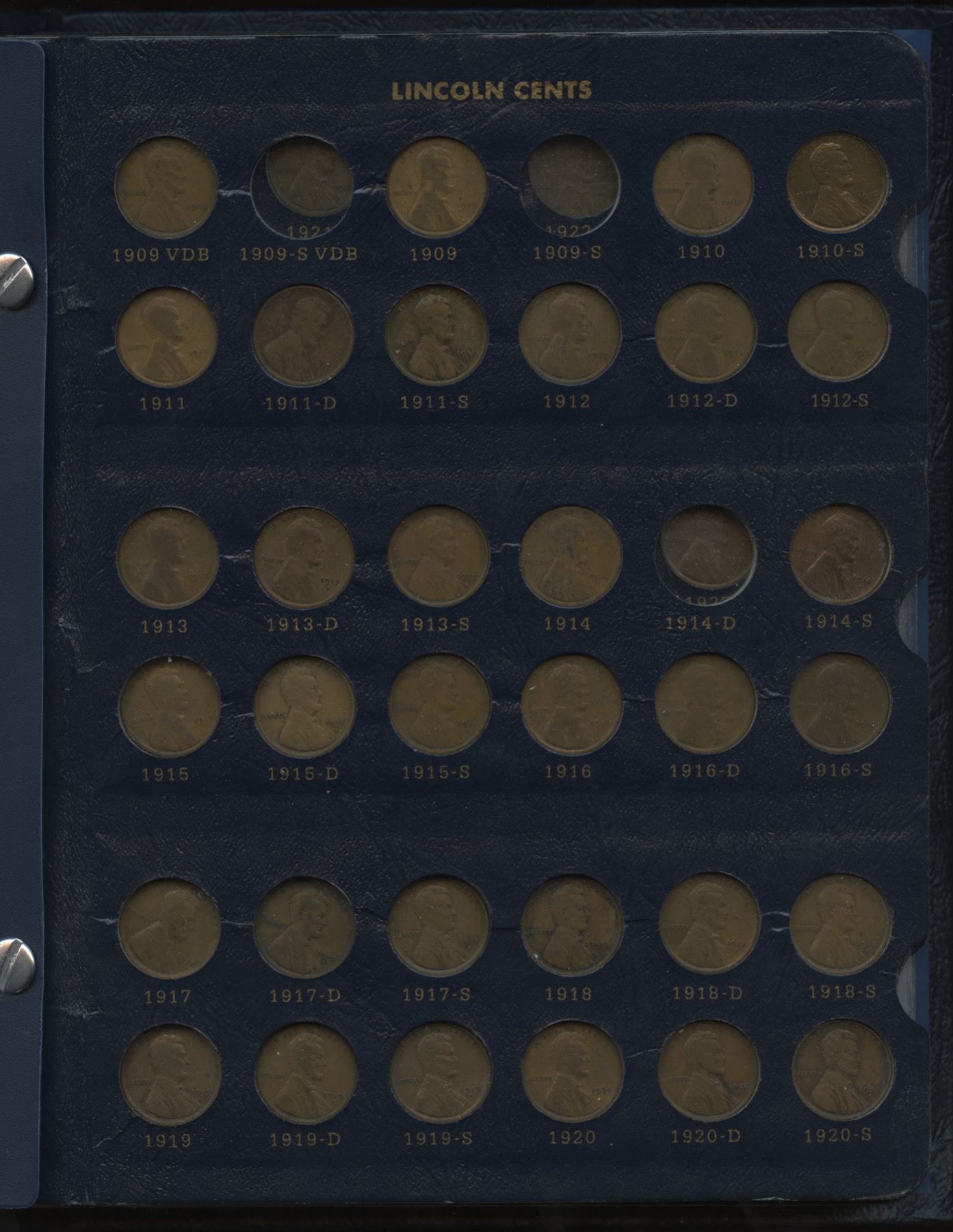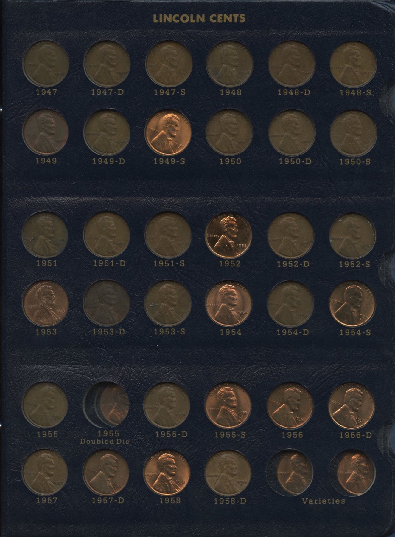 Most key dates, including 1909 VDB, 1910S (EF), 1911S (VF), 1912S, 1913S (VF), 1914S (VF+), 1915S, 1922D (VF), 1924D (F), 1926S (VF), 1933D (MS) and 1952 is a proof strike; over US$450 Red Book value.