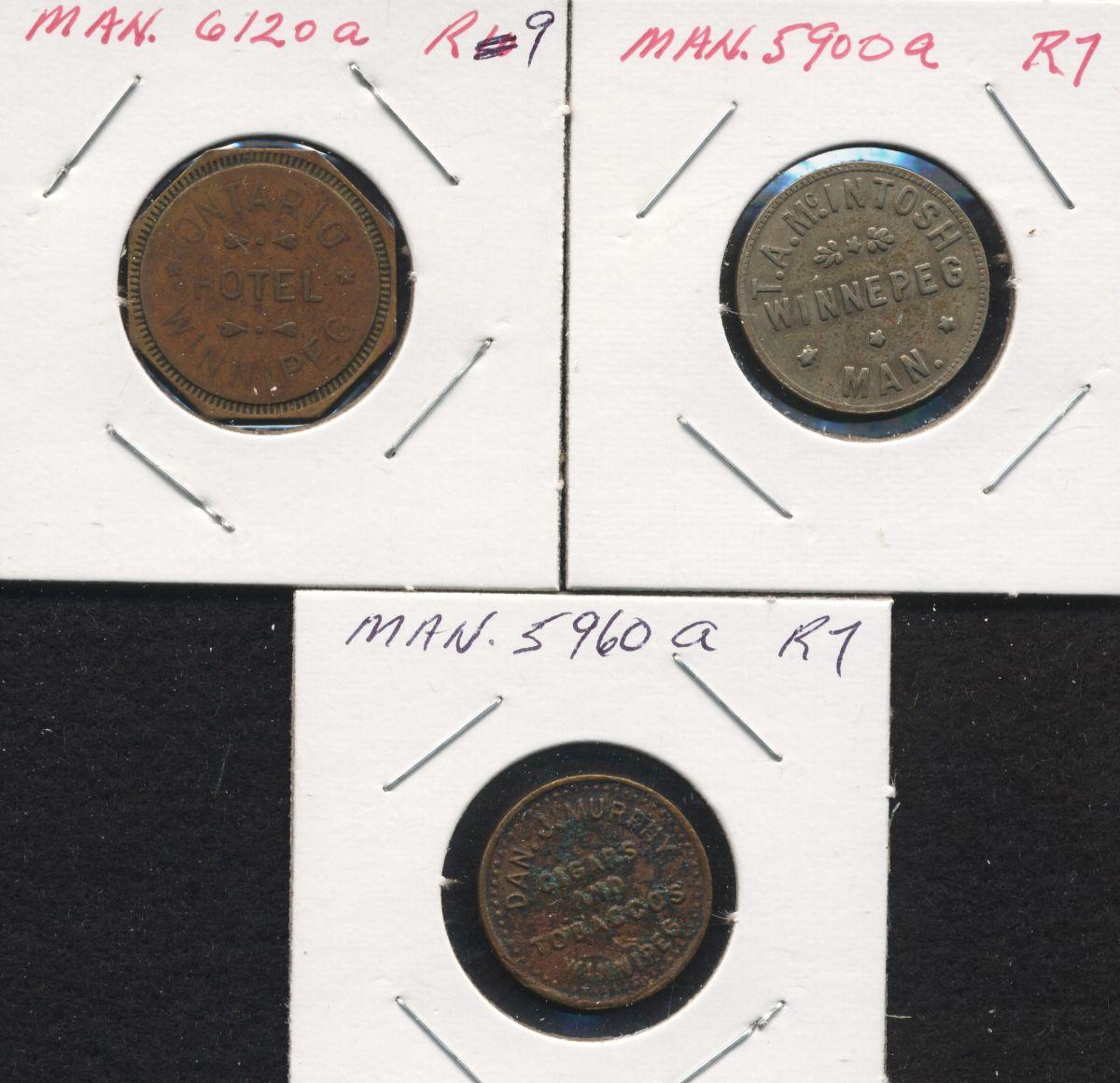 T.A. McIntosh, 5 cents, Dan Murray, 5 cents, Ontario Hotel, 10 cents (3 pcs)*