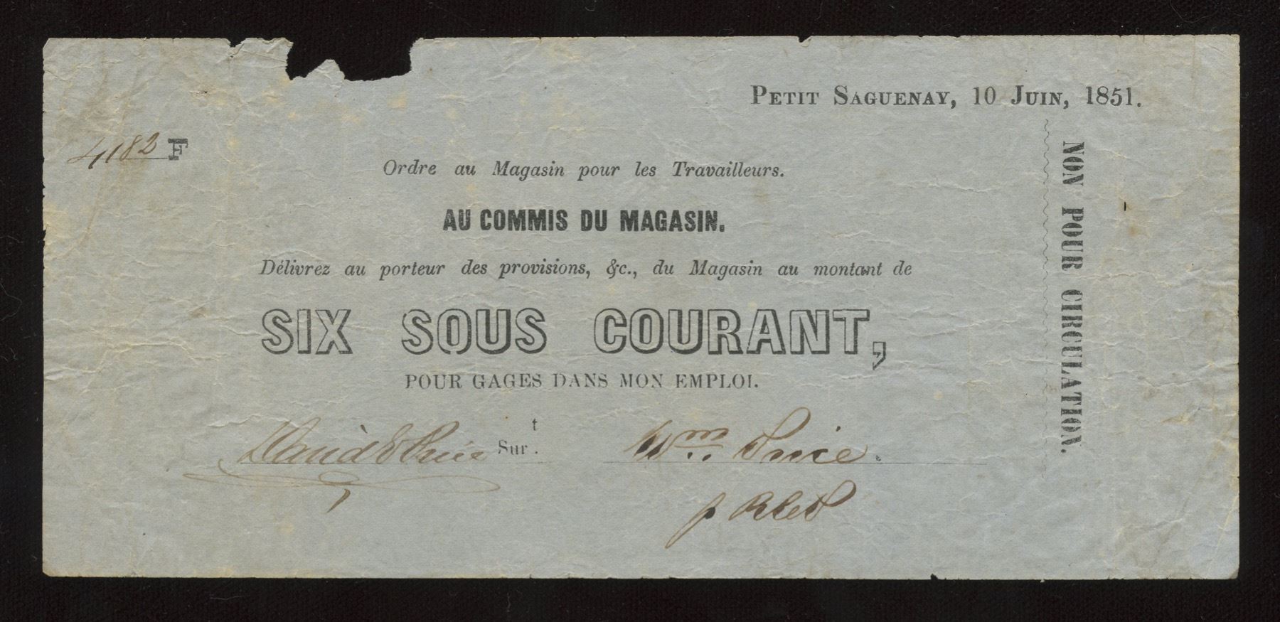 Wm Price, Petit Saguenay, Six Sous, 1853