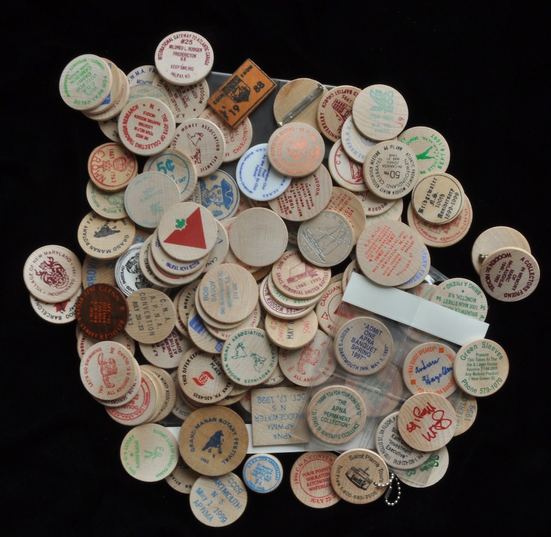 Wooden Nickels. Lot of 100+ woods, Maritime issues, very little duplication.