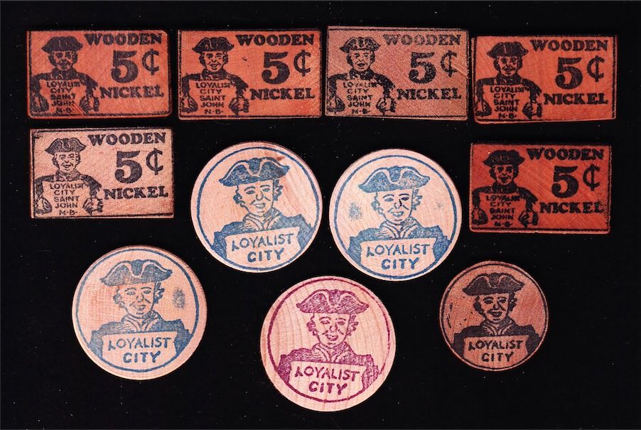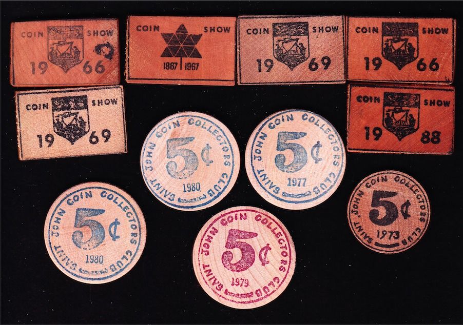 Wooden Nickels - Saint John Coin Club, all low mintages, 1966 (2), 1967, 1969 (2), 1973, 1977, 1979, 1980 (2), 1988 (11 pcs)