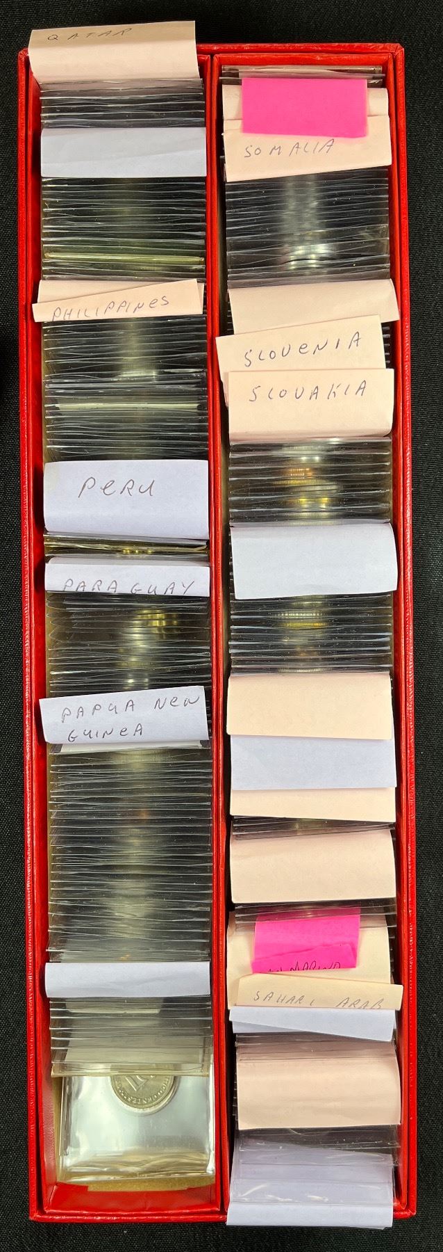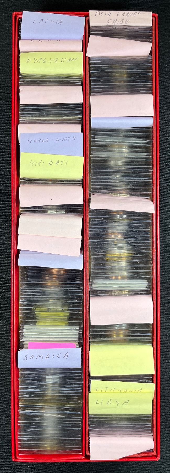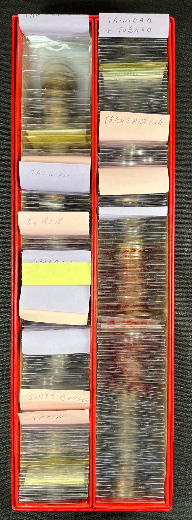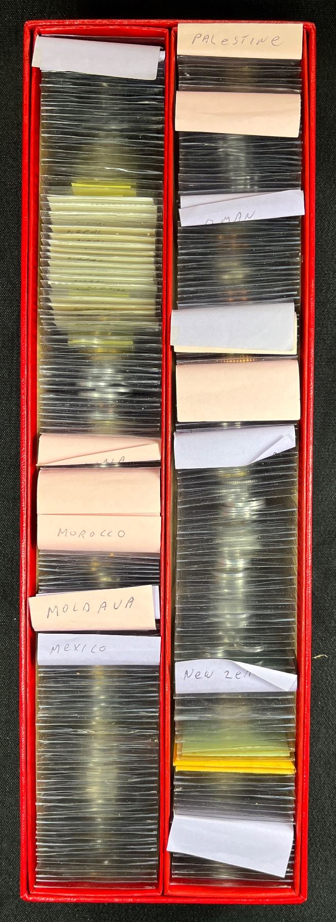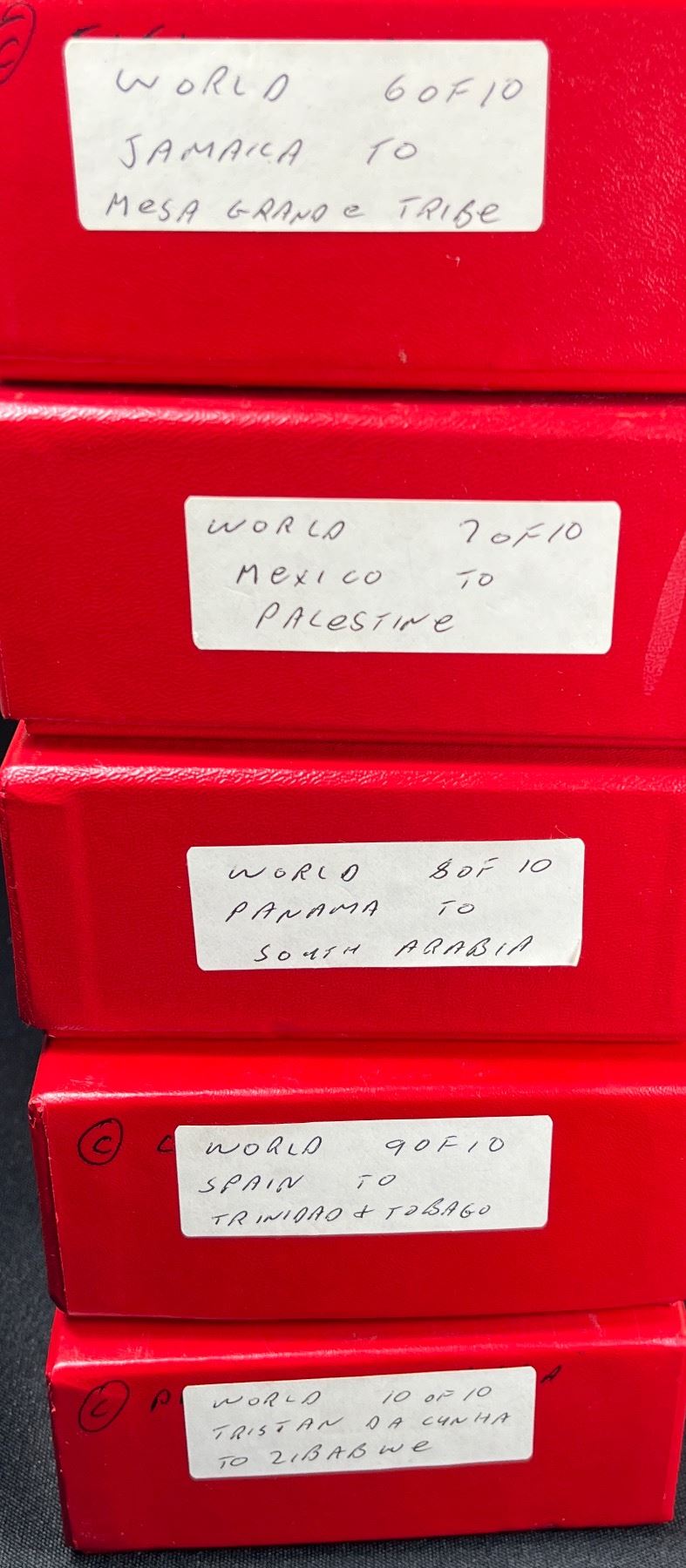 Comprises of 5 double row red boxes, from Jamaica to Zimbabwe. We assume Patrick used those examples to compare with his errors.