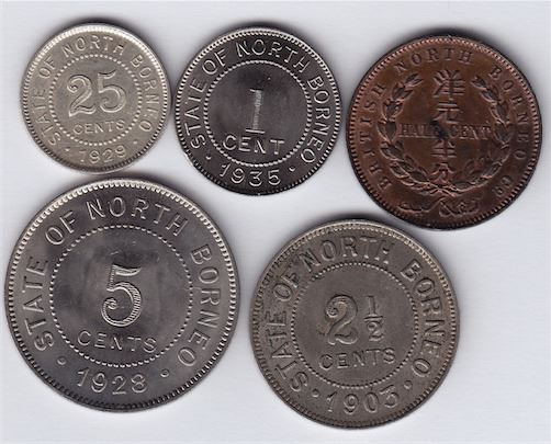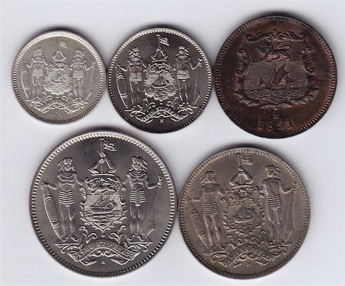 Includes: 1891 Half Cent, KM#1, EF; 1935 One Cent, KM#3, AU; 1903 Two and a Half Cent, KM#4, EF; 1928 Five Cent, KM#5, Unc; 1929 Twenty Five Cent, KM#6, EF-AU. 5 Pcs.