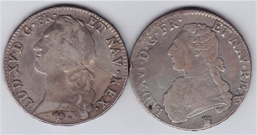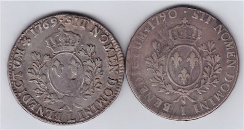 2 Ecus, 1768L, 1790I. F-VF. 2 Pcs.