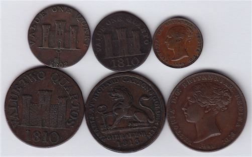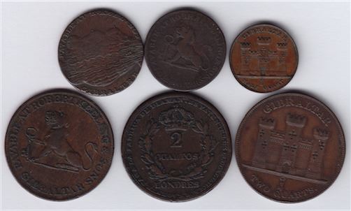 Includes: 1842 Half Quart, KM#1, F; 1802 One Quart, KM#Tn1, VF; 1810 One Quarto, KM#Tn3.1, F; 1813 Two Quarts, KM#Tn6, F+; 1810 Two Quartos, KM#Tn4.2, VF; 1842 2 Quarts, KM#3, VF-EF. 6 Pcs.