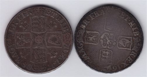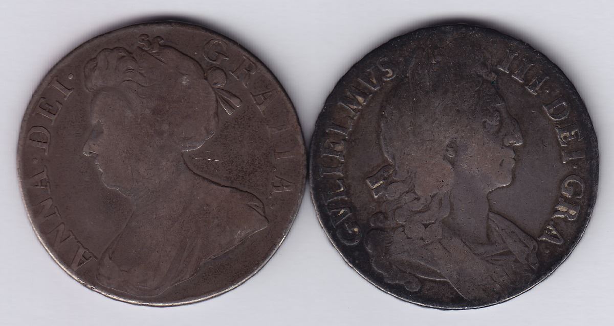 Includes: 1695 KM#486, VG; 1708 KM#526.3, VG+. 2 Pcs.