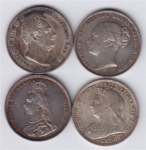 Includes: 1836 KM#713, aXF; 1866 KM#734.3, aXF; 1887 KM#761, XF-AU; 1897 KM#780, XF+. 4 Pcs.
