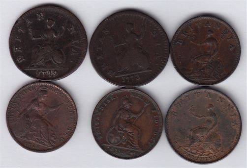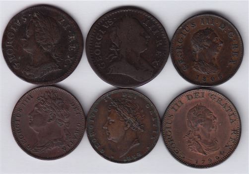 Includes: 1749 KM#581.2, VF-XF; 1773 KM#602, F; 1806 KM#661, XF; 1826 KM#677, XF; 1826 KM#697, VF+; 1799 KM#646, XF. 6 Pcs.