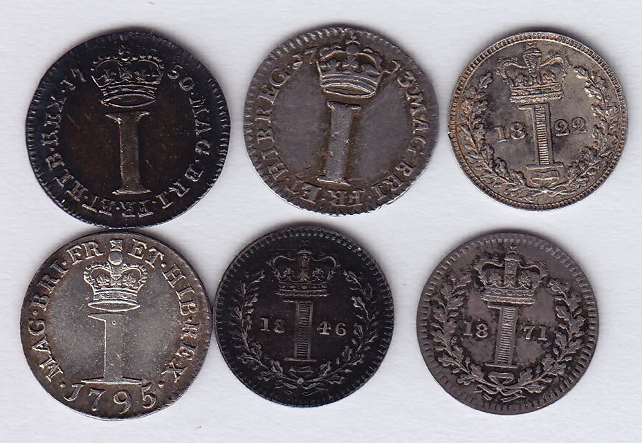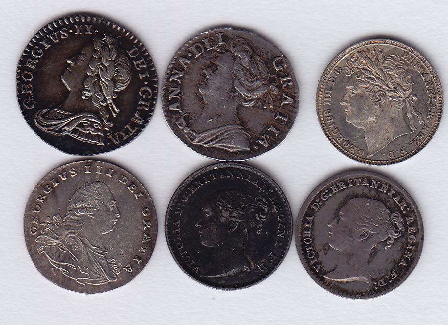 Includes: 1713 KM#512, VF-EF; 1750 KM#687, EF-AU; 1795 KM#614, AU; 1822 KM#683, EF-AU; 1846 KM#727, VF-EF; 1871 KM#727, VF+. 6 Pcs.