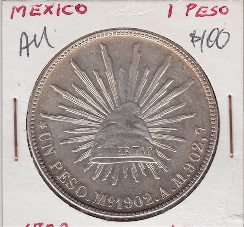 World Coins - Mexico 1 Peso 1902 - Mo AM Mint. 27.2 gms, AU.