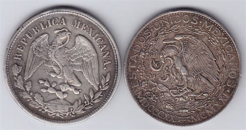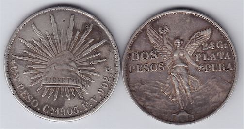 Includes: Peso, 1905 CN, VF Details, Cleaned; 2 Peso, 1921, VF Details, Independence Winged Victory Dos Pesos, KM#462. 2 Pcs.