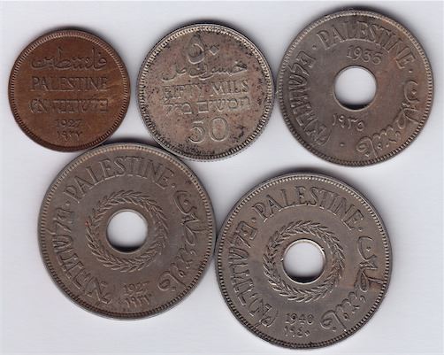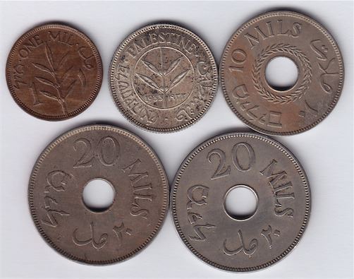 Includes: 1927 1 Mil, KM#1; 1935 10 Mils, KM#4; 1933 50 Mils, KM#6; 1927, 1940, 20 Mils, KM#5. Conditions XF-AU. 5 Pcs.