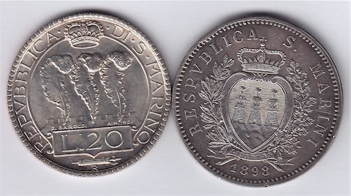 Includes: 1898 5 Lire, KM#6, XF with slight edge dings; 1932 20 Lire, KM#11, AU+. 2 Pcs.