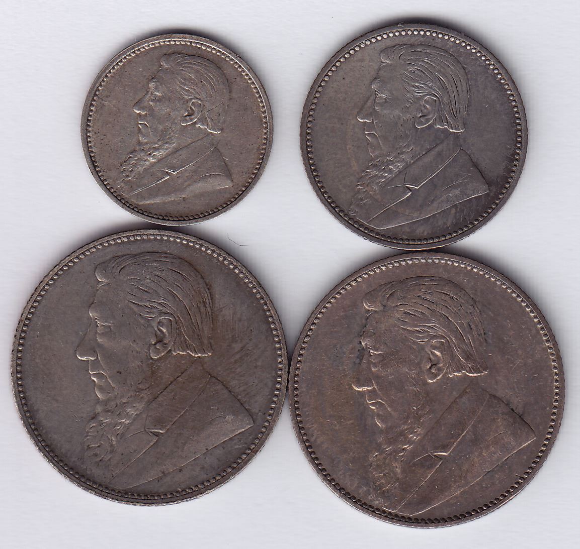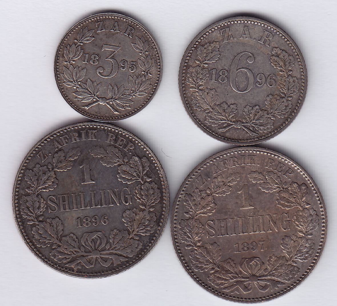 Includes: 1895 3 Pence, KM#3; 1896 6 Pence, KM#4; 1896, 1897 Shilling, KM#5; Nice XF+ lot. 4 Pcs.