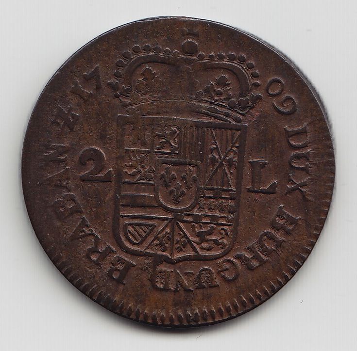 Spanish Netherlands, Philip V of Spain, 2 Liards 1709, KM 5, pleasing gVF.