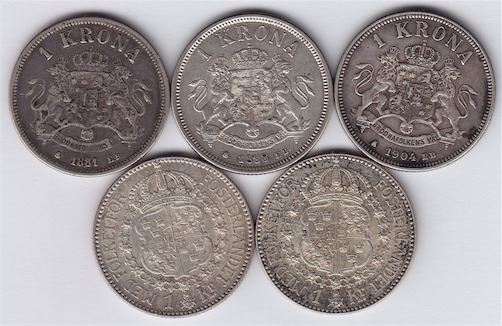 Includes: 1881 KM#747; 1898, 1904 KM#760; 1912, 1923 KM#786.1. Conditions VF-XF. 5 Pcs.