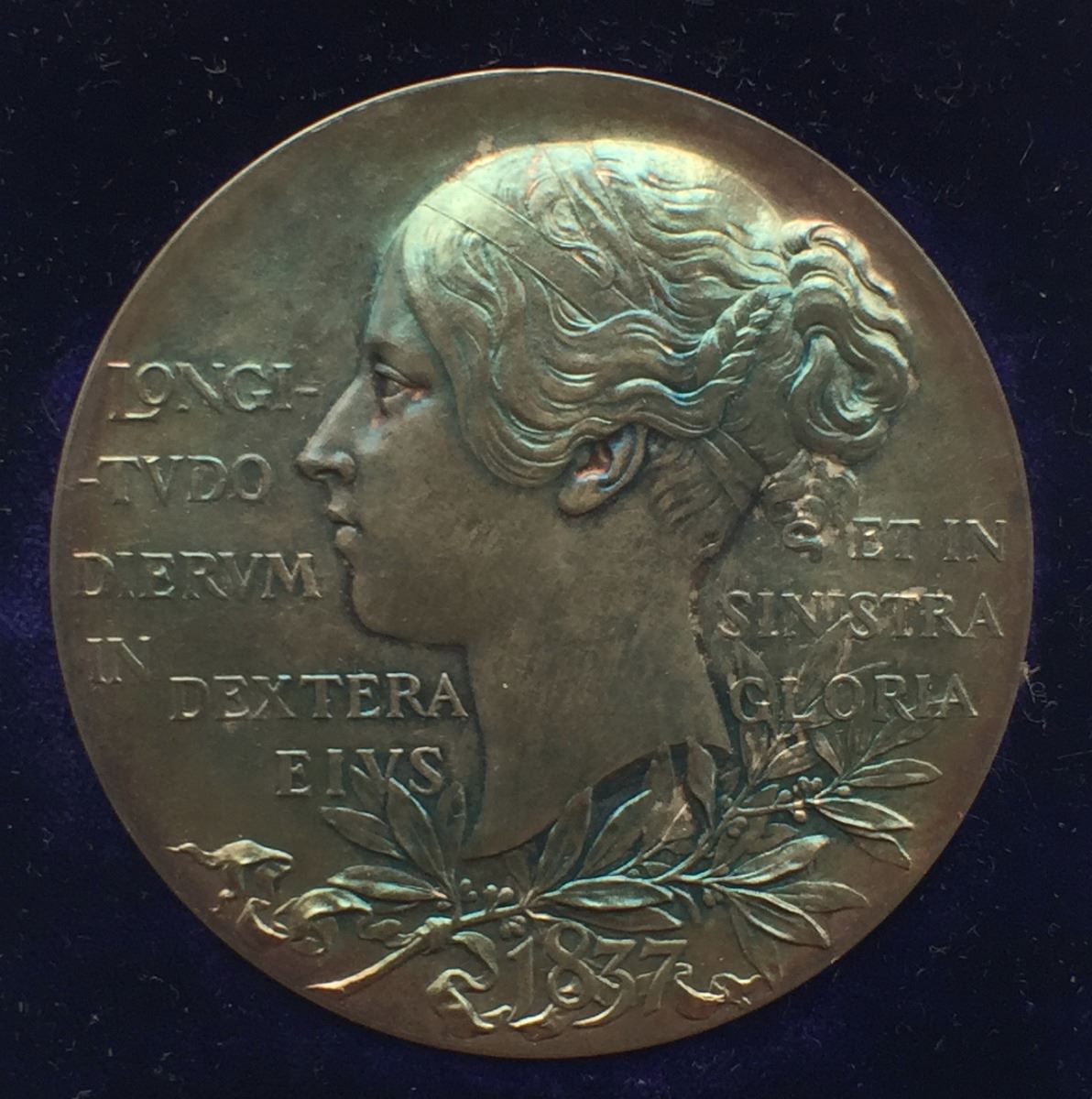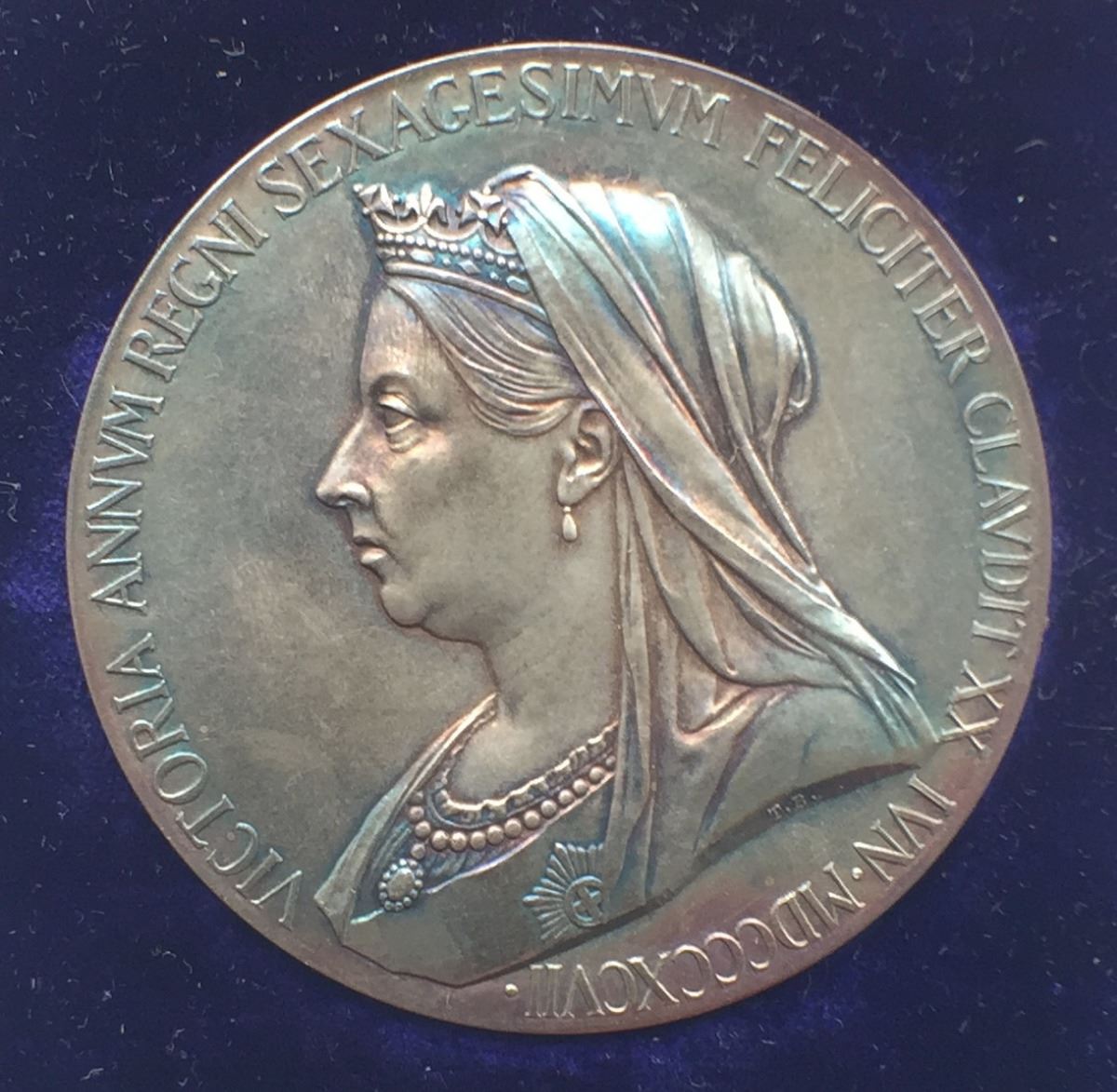 AR 56mm by G.W. DeSaulles. Official Royal Mint issue, in original case. EF with blue and gold toning.