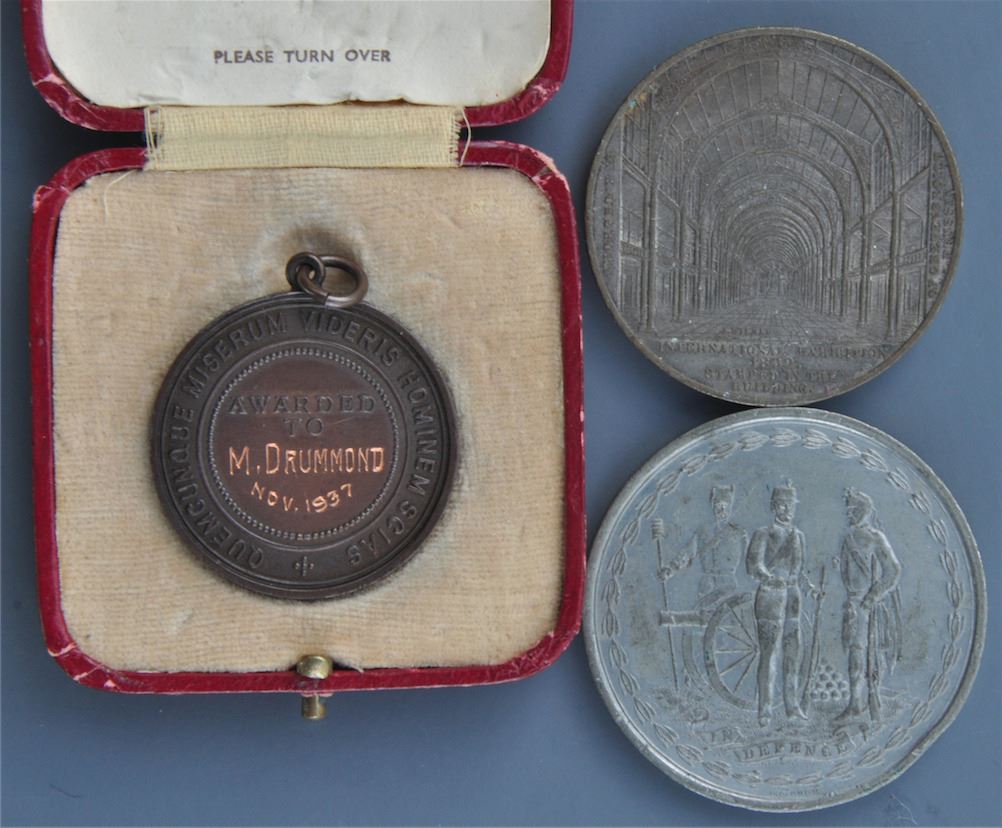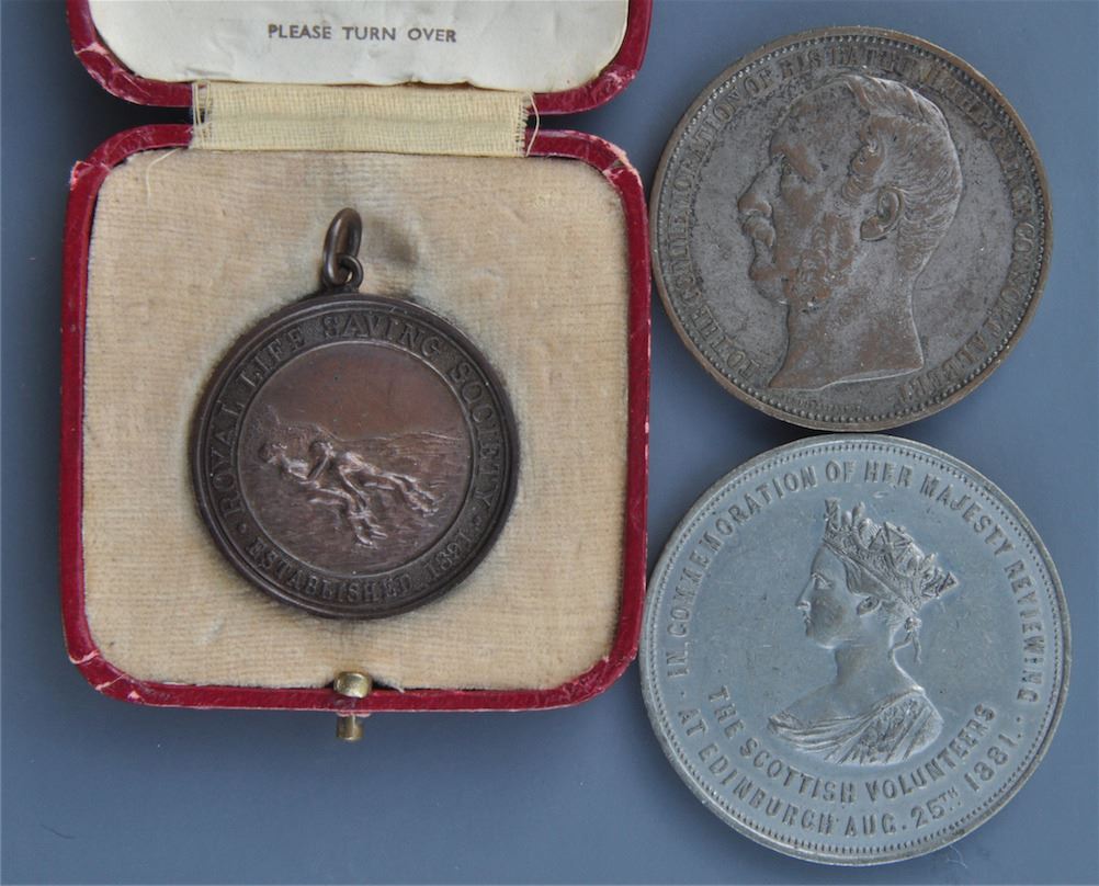 44mm, WM. Great Britain, Review of the Scottish Volunteers 1881; 40mm, Lead. Death of Albert, 1862; 38mm, Copper. Royal Lifesaving Society, awarded to M Drummond, Nov., 1937, in case of issue. 3 Pcs.