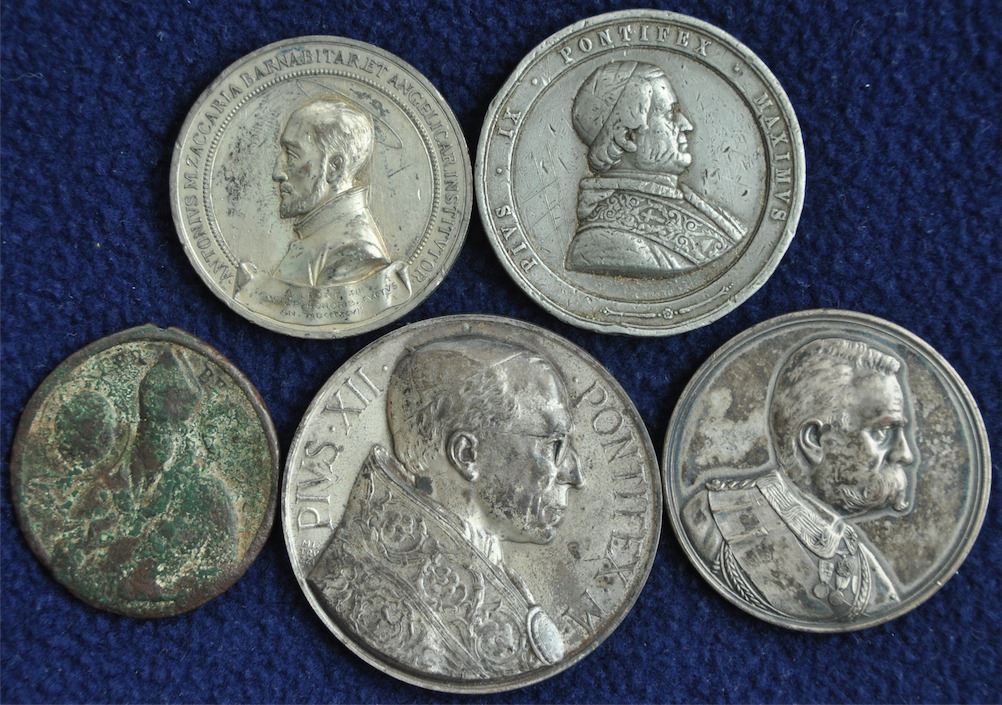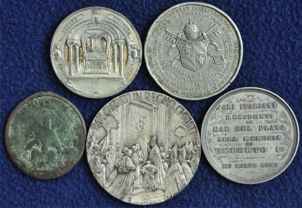 Interesting lot of 5 Italian medals. Two are Papal the others will make great research and study pieces. All are white metal. Viewing recommended. 5 Pcs.