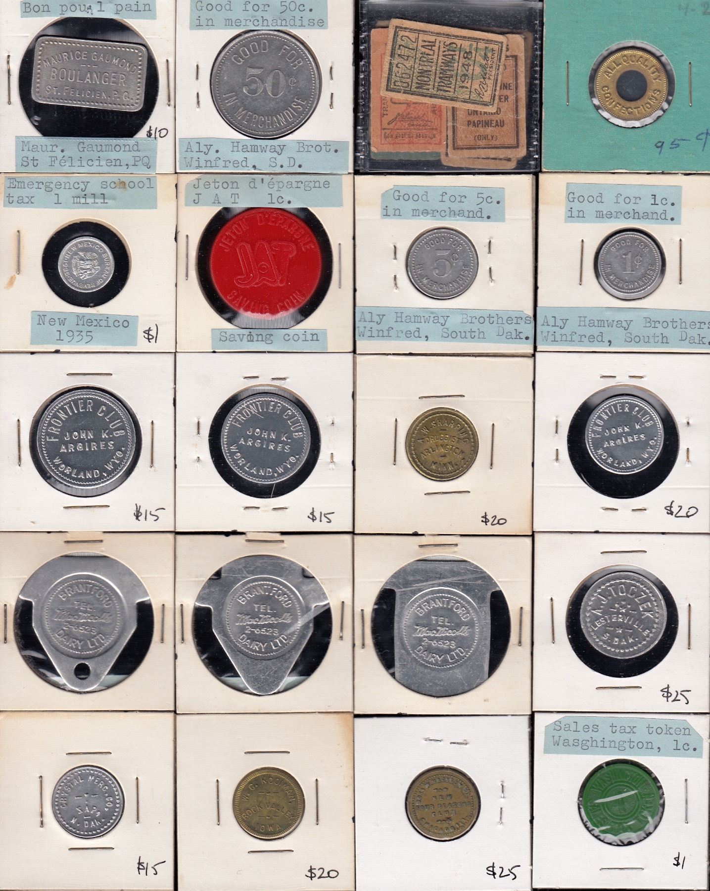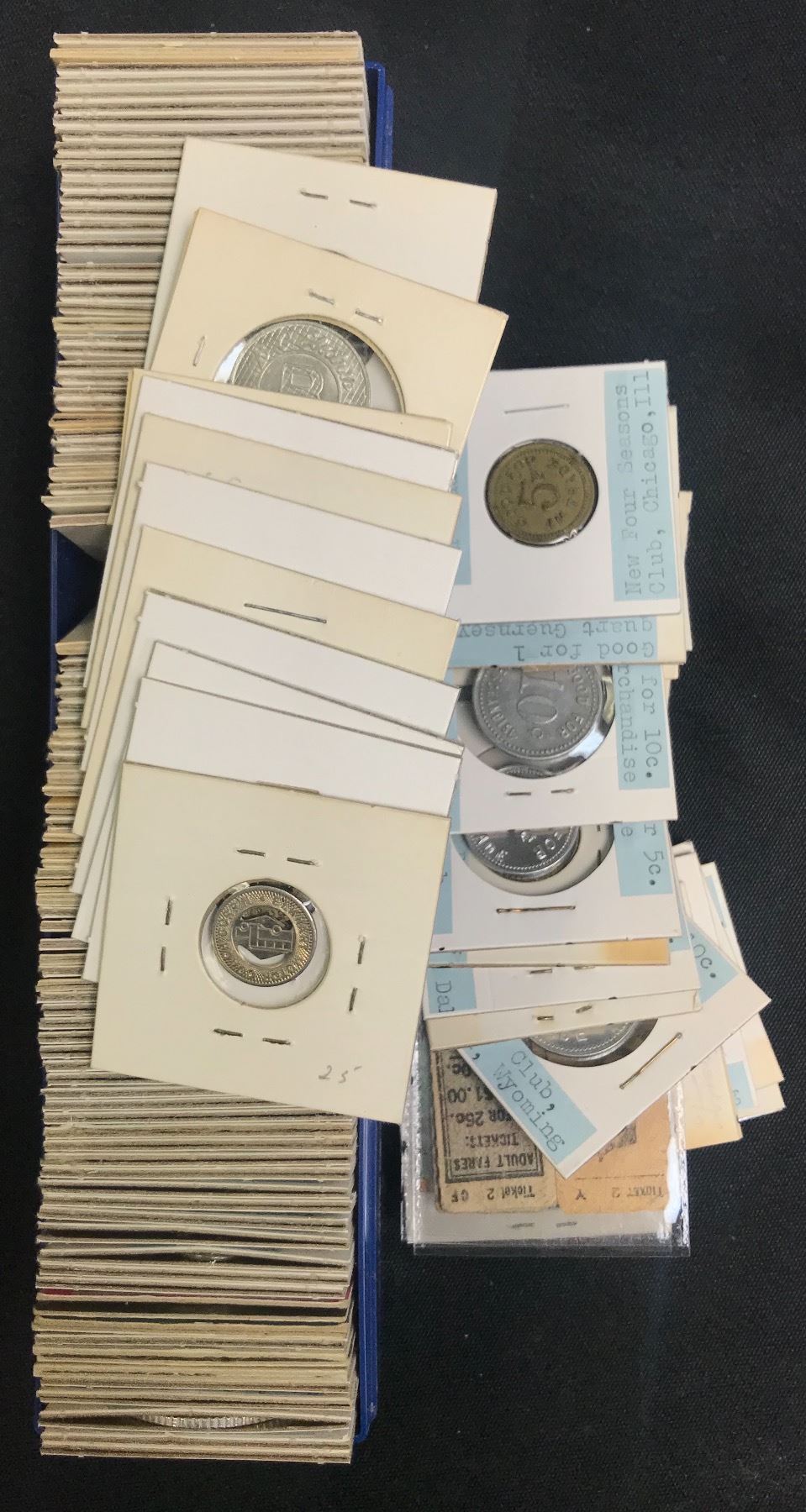 Includes a variety of U.S.A. Good For Tokens, Canadian and U.S.A. Transportation Tokens, Tune Tokens, Amusement Tokens and Miscellaneous Tokens. 131 Pcs. Lot should be viewed.