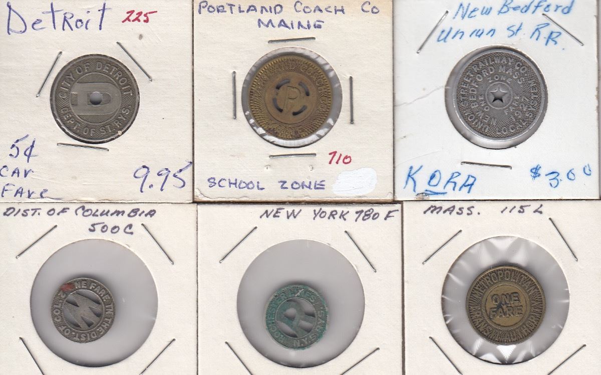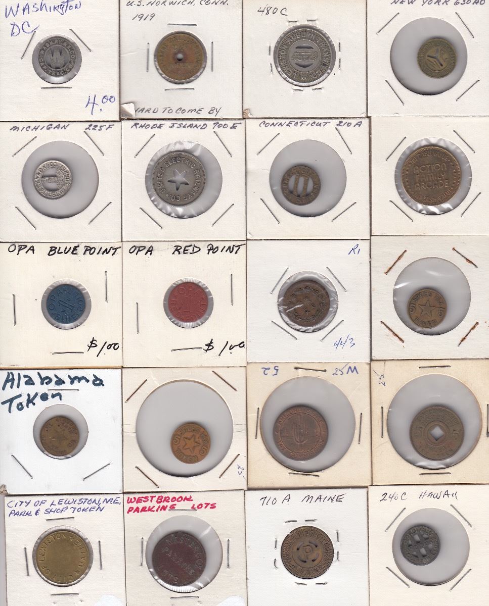 World Tokens - 17 United States transportation & parking tokens, 6 sales tax tokens (US), 2 OPA tokens and 1 amusement piece. Viewing is recommended. 26 Pcs.