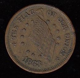 World Tokens - US Cival War Token 1863 - Patriotic Copper Token The Flag Of Our Union - ARMY & NAVY - VF/EF.