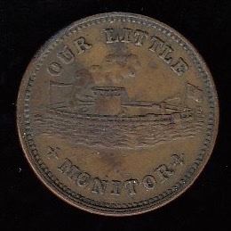 World Tokens - US Civil War Token 1863 " OUR LITTLE MONITOR " PATRIOTIC CWT 239/422av - EF.