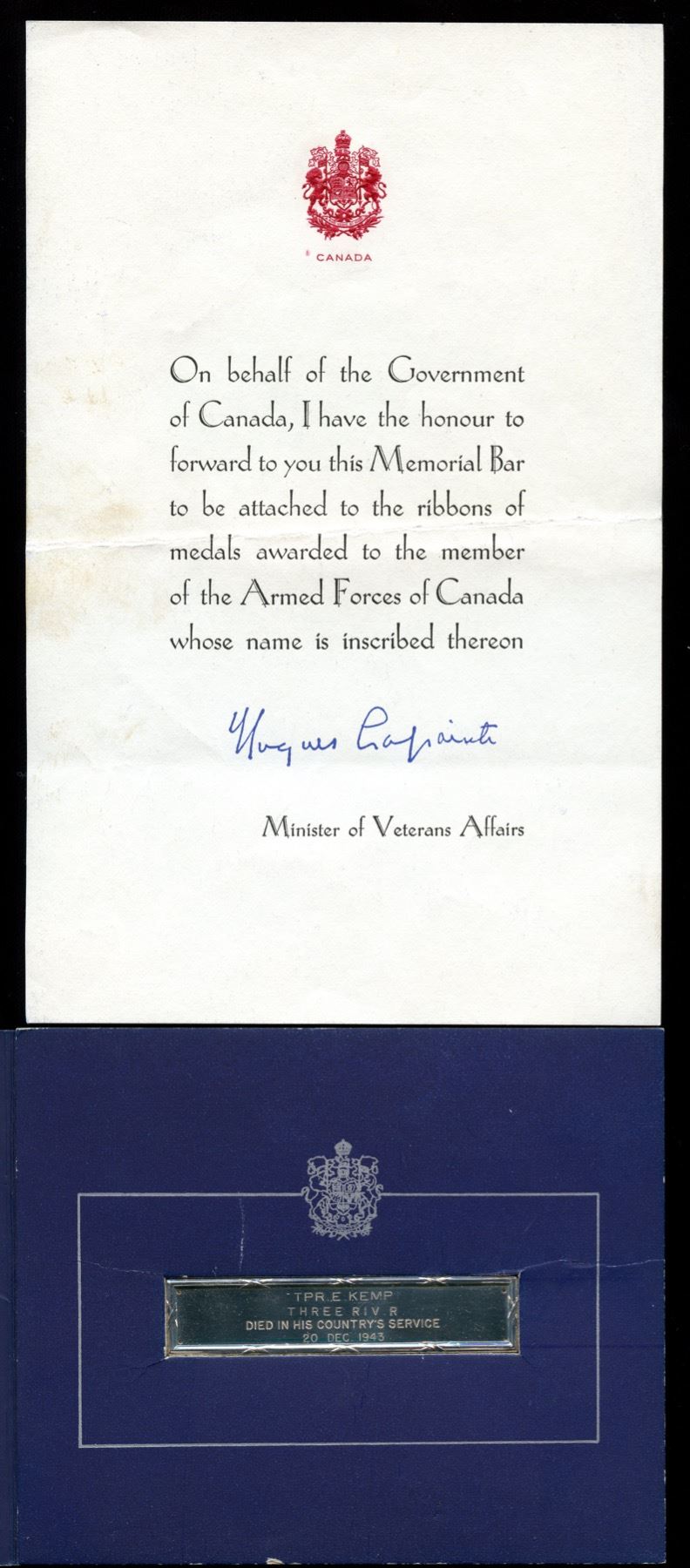 Died in his country service, Dec. 20, 1943. In original card holder with signed certificate.