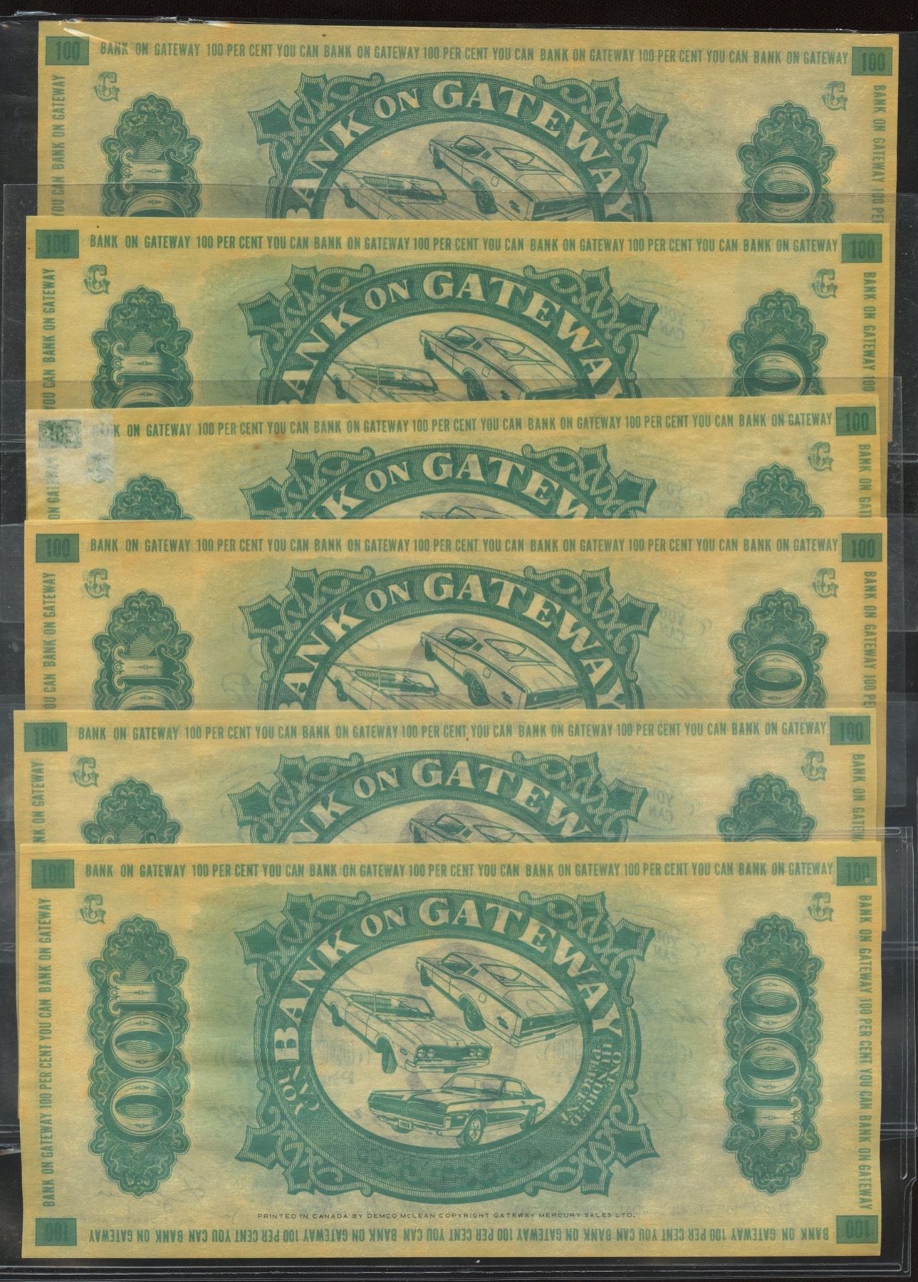 All different and uncirculated. Printed in Canada by Demco for Gateway Mercury Sales Ltd. Toronto, Ontario. 6 pcs.